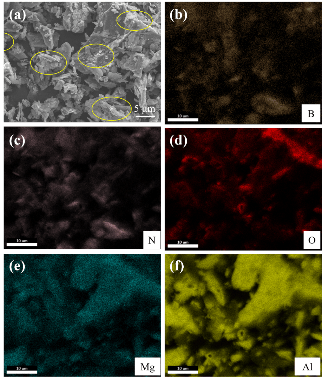 此外,郑欣团队发现镁碳耐火材料是冶金设备炉衬的关键材料,但高石墨含量在高温下易氧化的问题,致材料结构疏松、寿命缩短,又使氧化产物造成钢液增碳,影响低碳钢质量。随着洁净钢冶炼及节能降耗需求的提升,低碳镁碳耐火材料的研发迫在眉睫。然而,直接降低石墨含量会劣化材料性能,如何提升低碳产品的抗氧化性成为了难题。基于此,郑欣团队决心突破纳米氮化硼制备的技术限制,开发更加高效的纳米氮化硼粉体制备工艺解决难题。