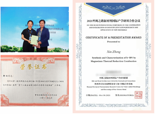凭借在材料科学领域的卓越表现,郑欣还收获了一系列令人瞩目的成果:她曾作为核心成员参与国家自然科学基金项目、省重点研发计划等省部级科研项目3项;发表学术论文10余篇,其中在材料领域权威SCI期刊发表论文6篇,1篇获得期刊编辑推荐;先后在“丝绸之路国际产业合作与融合学术研讨会”“全国耐火原料学术交流会”等国际国内学术会议作主题报告,并在“第十八届全国耐火材料青年学术报告会”获会议论文三等奖。