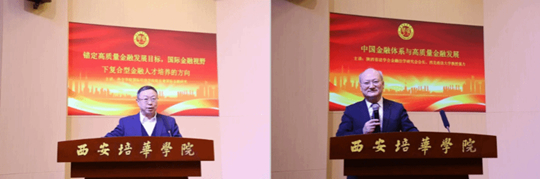 中国银行陕西省分行行长肖达、中国企业文化促进会金融文化工作委员会主任管建华先后致辞。分别从行业发展、金融服务、文化建设等角度,为校企协同育人、金融人才培养建言献策,对西安培华学院在金融教育领域的探索与实践给予高度肯定。