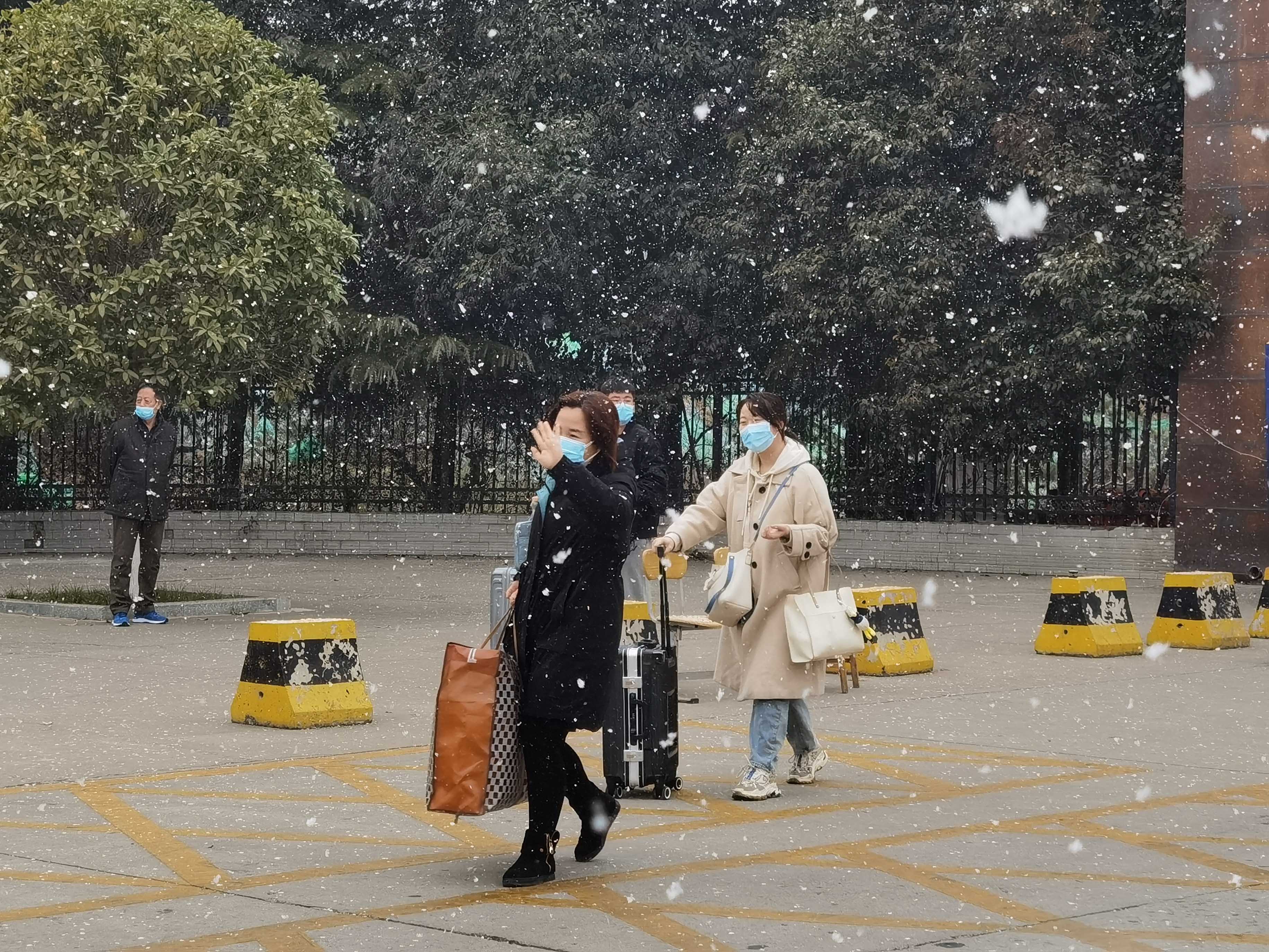 上午9时许,天空飘着鹅毛大雪,天气虽寒冷,却阻挡不了学生们归家的热情。为了确保学生能够安全返乡,学校全校动员,制定多重方案,尽最大可能为学生离校返乡提供便利条件和安全保障。