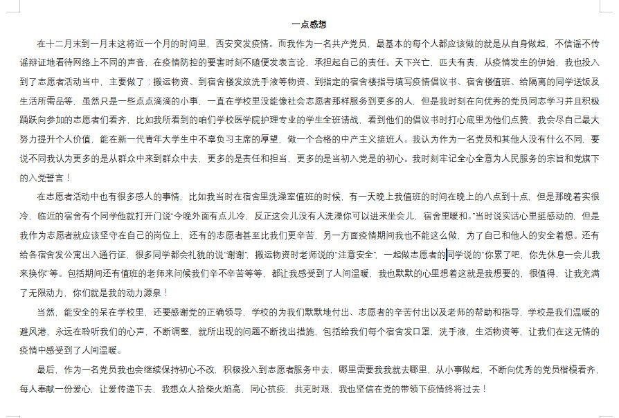 在课余时间,会计与金融学院国际经济与贸易和金融工程专业的部分同学加入了志愿者队伍,他们主动参与到日常校园防控保障工作当中。19级国贸专业的赵秦聪同学在志愿者服务中感受颇深,自己记录下来这一路的心路历程。