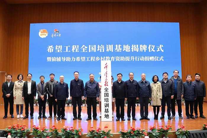大会上,由陕西省十届人大常委会原副主任邓理,中国青少年发展基金会党委书记、理事长郭美荐,共青团陕西省委书记、省青联主席徐永胜,西安培华学院理事长姜波共同为希望工程全国培训基地揭牌。