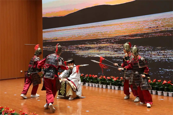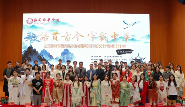 4月19日,西安培华学院“语贯古今、字载中华”全媒体传播创新发展研究院传统文化传播工作室首映展演在维之图书馆报告厅举行。剧目总监制、传媒学院院长杜耀峰及传媒学院师生出席了本次汇演。本次展演以诗经、史记等古代文学经典作品为主题,传承中华传统文化。