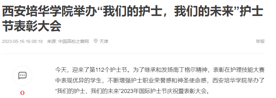 今天,迎来了第112个护士节。为了继承和发扬南丁格尔精神,表彰在护理技能大赛中表现优异的学生,不断增强护士职业荣誉感和神圣使命感,西安培华学院举办了“我们的护士,我们的未来”2023年国际护士节庆祝暨表彰大会。