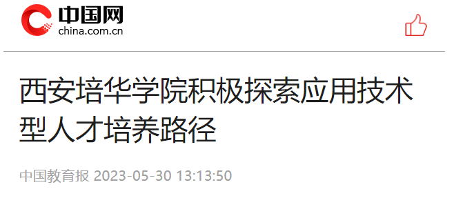 2014年,为适应社会经济发展对应用型人才的需求,西安培华学院积极响应国家大力倡导地方普通本科高校向应用型转变的号召,成为陕西省首批转型发展试点单位。多年来,学校坚持“以人为本,以德为先”办学理念,在育人实践中传承与创新“黄炎培职教理念”,依托校企共同体资源共享、协同增效的优势,大力推进应用型课程改革,积极探索“职业导向、能力牵引、项目驱动”的应用技术型人才培养路径,取得阶段性成效。
