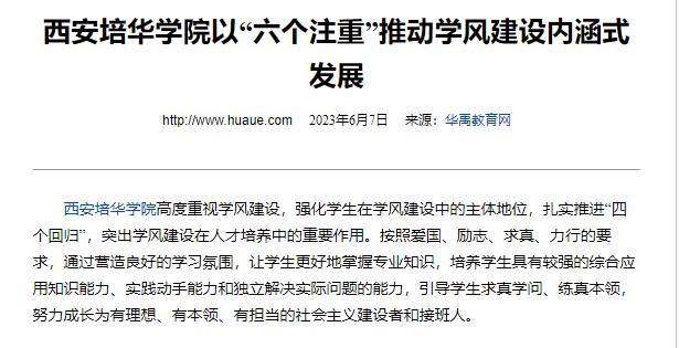 近年来,西安培华学院高度重视学风建设,强化学生在学风建设中的主体地位,扎实推进“四个回归”,突出学风建设在人才培养中的重要作用。按照爱国、励志、求真、力行的要求,通过营造良好的学习氛围,让学生更好地掌握专业知识,培养学生具有较强的综合应用知识能力、实践动手能力和独立解决实际问题的能力,引导学生求真学问、练真本领,努力成长为有理想、有本领、有担当的社会主义建设者和接班人。