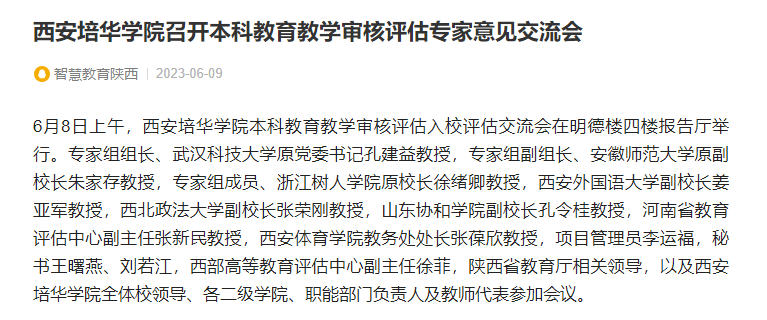 未来,西安培华学院将认真结合专家建议,在全校凝聚思想共识,强化责任担当,突出问题导向,坚持立德树人根本任务,进一步深化本科教育教学改革,确保高质量完成整改任务,整体提升教育教学质量,加快建成一所政府放心、社会满意的高水平应用型大学。
