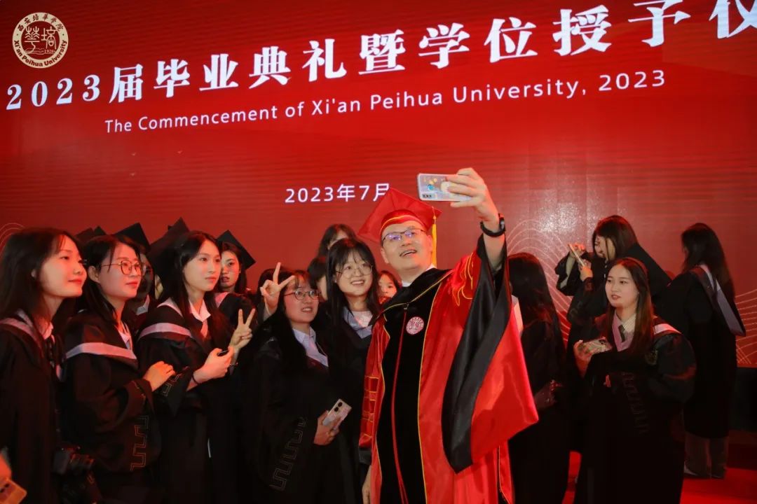 7月1日上午,西安培华学院2023届毕业典礼暨学士学位授予仪式在长安校区体育馆举行,全体校级领导、学位委员会委员、教师代表、辅导员代表、毕业生家长代表、校友代表以及2023届毕业生代表2000余人共同见证这一特殊而又神圣的毕业时刻。