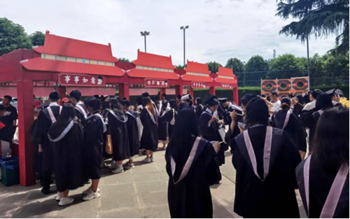 2023年,正值学校建校95周年,场馆外,学校特别搭建了意义深远的“95周年历史长河”景观墙,设置了励志古诗词的道旗与路标,与“平步青云”“掷地有声”“功不‘糖’捐”“事事如意”的毕业游戏互动区遥相呼应,毕业生们手持“致青春”“前程似锦”“乘风破浪”“未来可期”等主题元素的手牌纷纷合影留念。