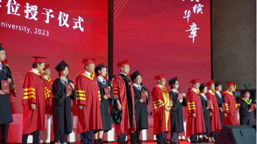 上台授礼的学生共17组本科生,代表着西安培华学院自2007年获得首批民办高校学士学位授予权的第17年,17年赓续奋斗的篇章,十数万名培华学子传承着培华精神,在祖国发展建设的各行各业接续奋斗,奉献青春力量。