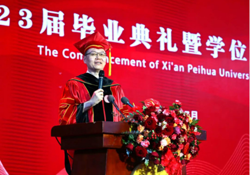 7月1日上午,西安培华学院2023届毕业典礼暨学士学位授予仪式在长安校区体育馆举行,全体校级领导、学位委员会委员、教师代表、辅导员代表、毕业生家长代表、校友代表以及2023届毕业生代表2000余人共同见证这一特殊而又神圣的毕业时刻。