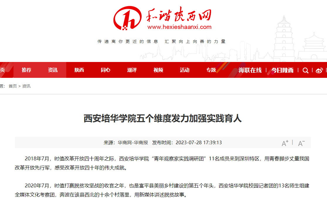 近年来,西安培华学院充分关照大学生的成长成才规律和教育教学活动规律,以服务学生的社会化成长为目标,重点从实践教学、第二课堂、社会实践、社团活动以及志愿服务等五个维度发力,积极构建实践育人体系,淬炼学生的综合素质,促进学生德智体美劳全面发展。