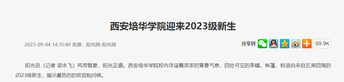 阳光讯(记者 梁永飞)风雨暂歇,阳光正盛。西安培华学院校内洋溢着浓浓的青春气息,四处可见的条幅、帐篷、标语向来自五湖四海的2023级新生,展示最热烈的欢迎和问候。