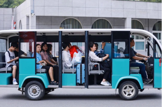 红马甲、小推车、迎新牌...,,,志愿者的身影忙碌穿梭在校园各个地方,全校上下齐动员,热情周到地迎接新同学的到来。