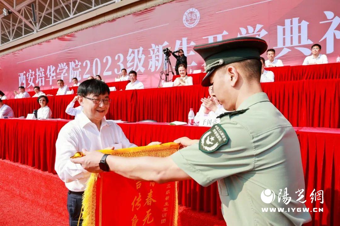 阳光讯(记者 刘杰)9月16日上午,西安培华学院在长安校区体育场举行2023年新生开学典礼暨军训总结大会,西安培华学院理事长姜波博士,校长李映方教授,学术委员会主席、副校长、人文与国际教育学院院长刘越莲教授,党委副书记、副校长姚文静副教授,副校长、医学院院长于国亮教授,党委副书记、纪委书记徐国富教授,财务总监薛清同志,校长助理张运良教授,校长助理姜涛同志,校长助理秦海锋副教授出席了大会,各二级学院、职能部门负责人,教师代表,学生家长代表及全体2023级新生参加了大会。