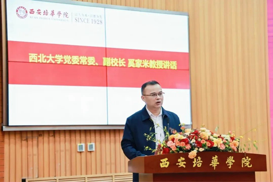 西北大学党委常委、副校长奚家米教授代表陕西省高等教育学会和西北大学对培华建校95周年表示祝贺。他表示,陕西是中华文化的发祥地之一,拥有一批实力雄厚、类型丰富、充满活力的高等院校,在国家高等教育格局中占据重要地位。西安培华学院是陕西省第一所真正意义上的民办高校,也是西部首家拥有学士学位授予权的民办高校,秉承“校誉至上,质量第一,自强不息,开拓前进”的校训,以应用型课程建设为抓手,不断深化教育教学改革,培养了一大批高素质应用技术型人才,为国家经济社会发展提供了智力支持和人力保障,走出了一条具有培华特色的民办教育发展之路,为陕西乃至全国的民办高等教育发展起到了良好的引领示范作用。
