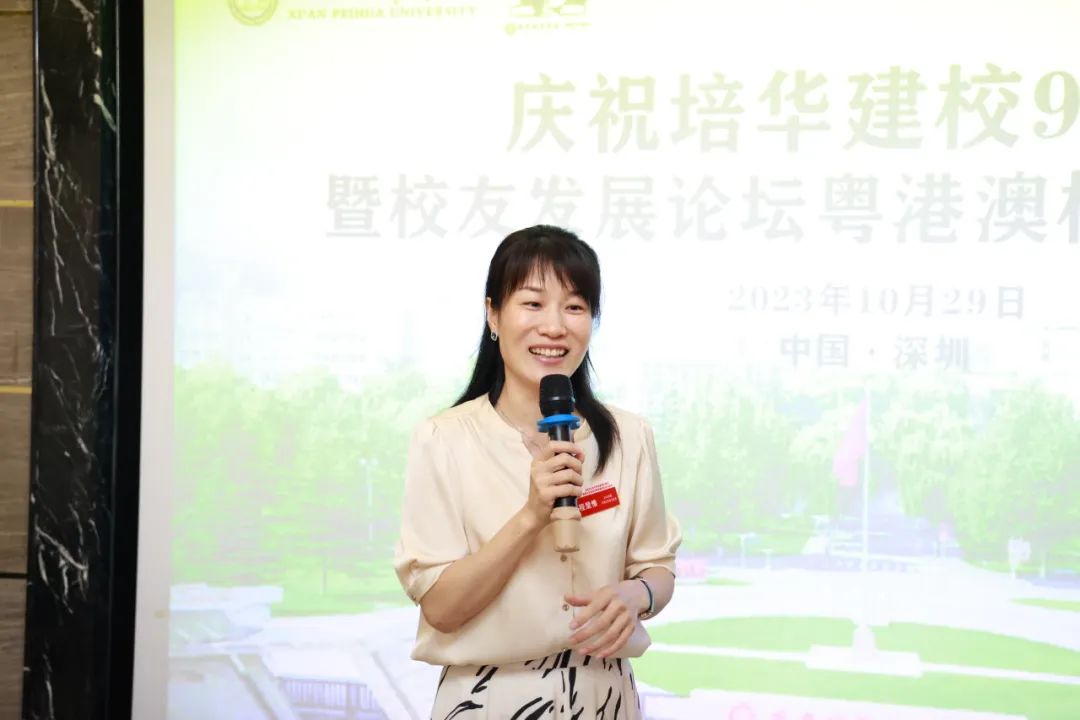 党委宣传部部长、新闻中心主任、校友服务与发展中心主任柳雨如数家珍地向校友们介绍了学校的发展历史,回忆了培华女大和长安校区落成初期的故事,勉励校友们脚踏实地谋事业,以优异的成绩迎接母校百年华诞。