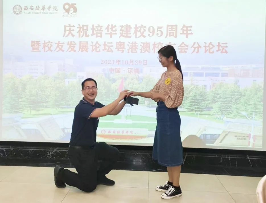 培华定制版戒指,为现场这对在培华结缘的校友,见证爱情。