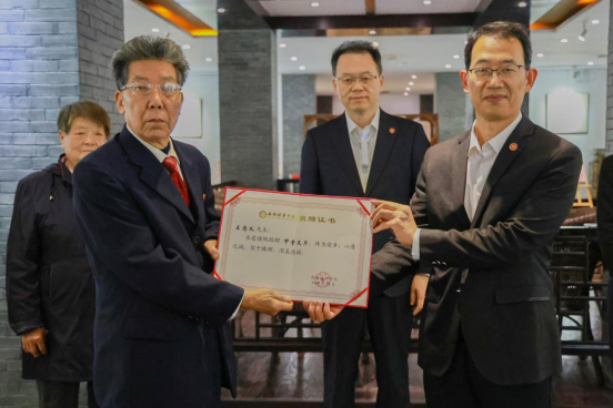 为了表示敬意,秦海锋代表学校为王老师颁发了捐赠证书,兹以纪念。