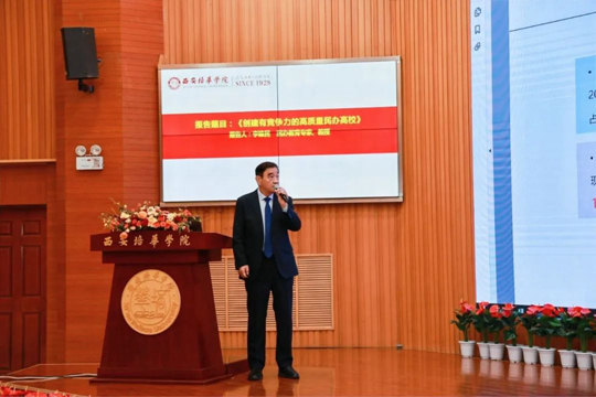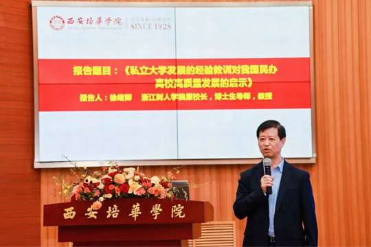 西安培华学院理事长姜波博士代表学校向莅临此次论坛的专家学者、嘉宾表示热烈欢迎和衷心的感谢。他表示,从1928年西安第一女子平民职业学校创立到西安培华学院,培华已走过95个春秋,七迁其址,九易其名,历经坎坷,不减韶华。培华始终秉承“以人为本,以德为先”的办学理念,“校誉至上、质量第一、自强不息、开拓前进”的校训精神,为社会培养了十余万高素质应用型人才,为国家经济社会建设做出了积极贡献。今天的培华,已站在了高质量发展的新起点,学校将深刻把握党对教育强国建设的本质特征和客观规律,不断加强内涵建设,不断提高人才培养质量,致力于办好人民满意的高水平民办大学。本次民办高等教育高质量发展论坛既是对民办高等教育办学历程的回顾,也是对民办高等教育未来发展的战略擎画,将为民办高等教育发展进一步指明方向。培华将认真学习研究专家们的务实之策,把“高质量发展”作为民办教育的行动实践,心怀国之大者,抓住大好机遇,全面贯彻党的教育方针,牢记为党育人、为国育才初心使命,为陕西经济社会发展培养更多应用技术型人才。