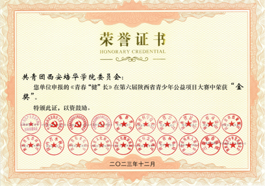 《青春“健”长》在第六届陕西省青少年公益项目大赛中荣获“金奖”