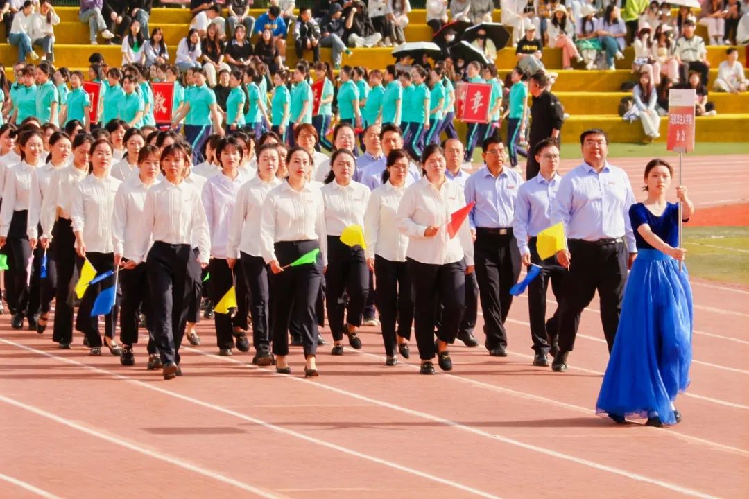 伴随着阵阵绚丽烟火,迎来了姜波理事长铿锵有力的致辞。他回溯校史时讲到,“锻炼健全体魄”是培华学院1928年建校之初提出的七条人才培养要求之首,正是培华学院对体魄健康的重视,使得培华能培育出近代革命家、上世纪全省女子篮球冠军……以及现在沐浴在阳光下的每个培华学子们。春季运动会是我校体育工作的一次大检阅,更是广大师生精神面貌的一次大汇演。他坚信,培华学子能不断在历练中成长,用良好的心态和健全的体魄去面对未来的“不确定”!他期待每位运动员以饱满的精神、昂扬的斗志,拼出成绩、赛出风格,展示培华学子的风采。