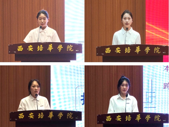 2020级英语03班欧玉琦、汉语言文学08班刘双双、汉语国际教育01班孙柯、学前教育07班周董宣4名考研学生代表依次发言。他们对校院的培养、师生的帮助表示了感谢,并分享了院校选择、专业备考等方面的备考经验。