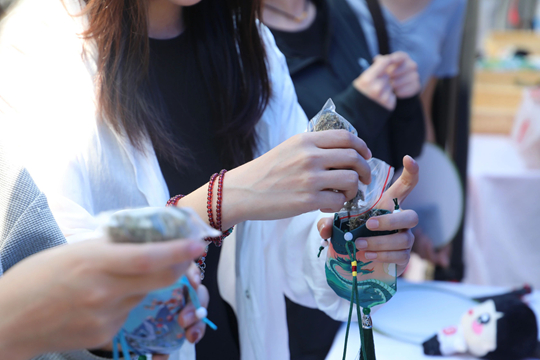 活动还设置了非遗文化体验区。在这里,师生们可以亲手体验刺绣香包的制作过程,感受非遗技艺的独特魅力,让大家在寓教于乐中学习了传统文化知识。