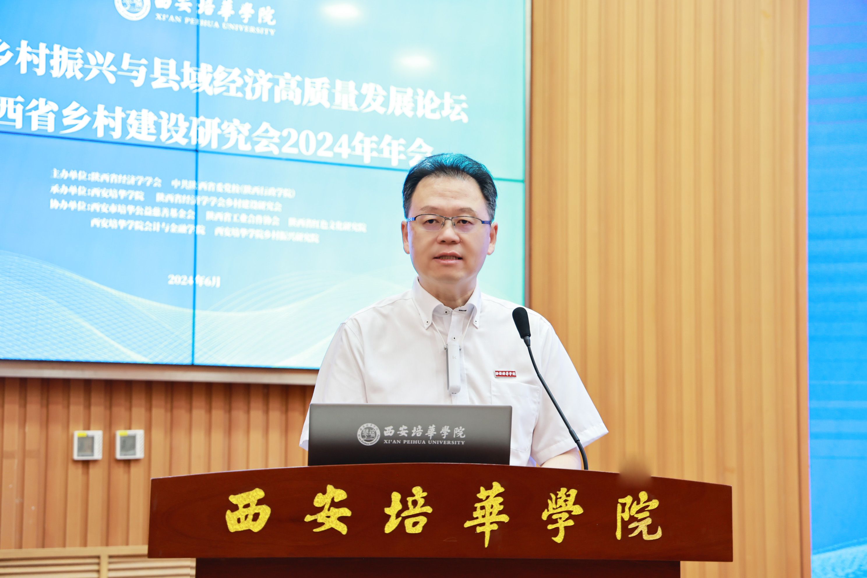 6月16日上午,第三届乡村振兴与县域经济高质量发展论坛暨陕西省经济学学会乡村建设研究会2024年年会在西安培华学院明德楼报告厅举行。此次论坛旨在凝聚乡村振兴智力资源,发挥高校优势,助力陕西省县域经济高质量发展。