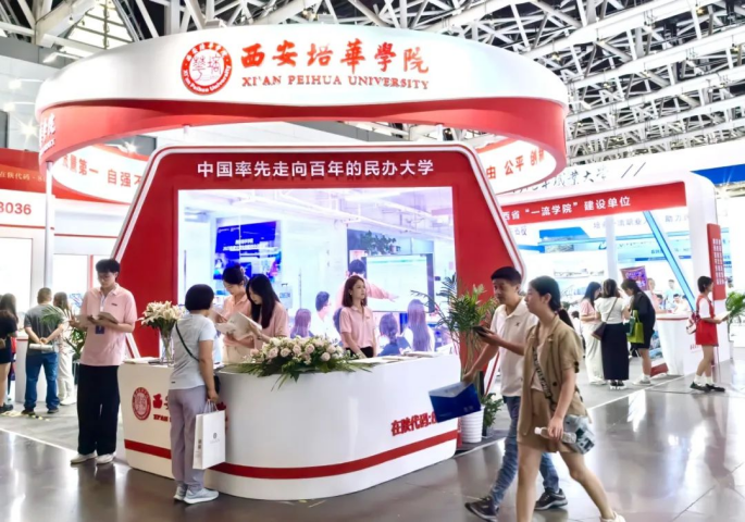 西安培华学院在二号展馆精彩亮相,通过展板、实物、新媒体等形式展示了学校历史、办学成果、校园文化以及思政育人实效、接受考生和家长的参观咨询。