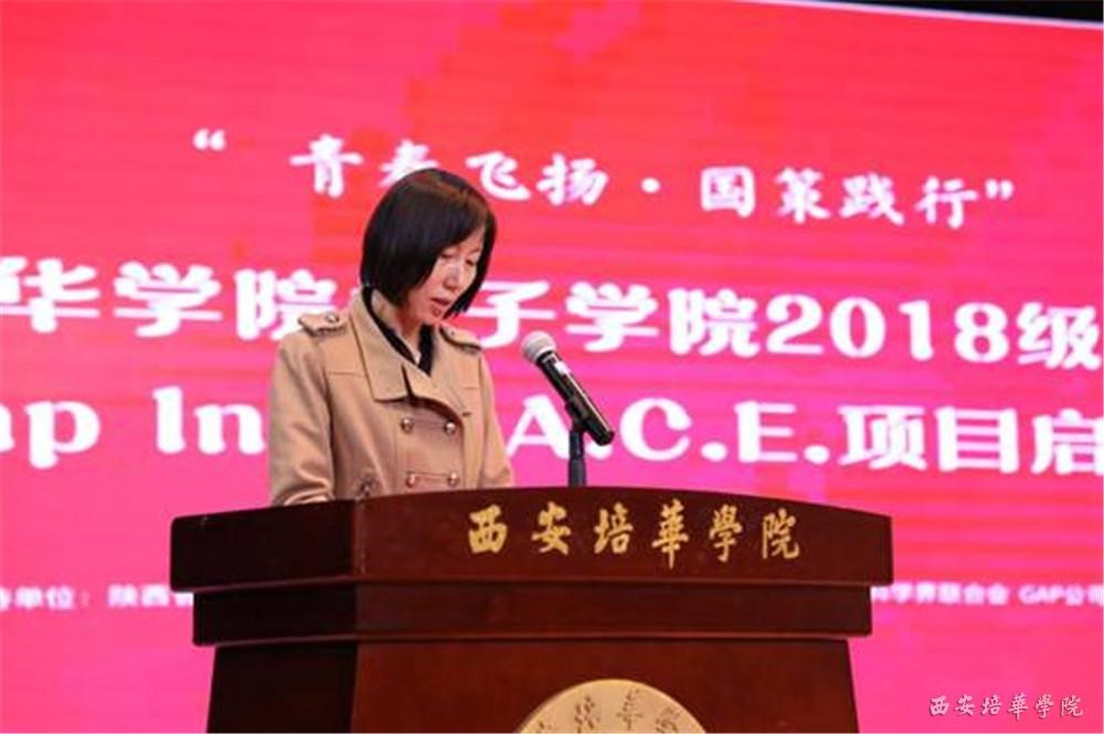 西安培华学院教师代表王鹏则重点介绍了女子学院本学期引进了GAP公司在全球范围内推广的P.A.C.E.项目,即《个人提升与职业发展》课程。通过全程参与式教学让学生可以“做中学、学中悟”。通过三个核心模块课程,掌握沟通技巧、问题解决、情绪与压力管理、时压管理的相关知识及技能。培养具有新时代特征的、拥有八大能力、有创新精神和懂得职业规划的女大学生。她还介绍了优秀的Gap lnc.P.A.C.E.课程讲师,Gap lnc.P.A.C.E.项目将成为我校女性教育、社会性别教育的创新载体;科研工作开展的新领域;教学方式改革的新实践;将成为学生与该课程、社会实践共同成长的有力见证,为贯彻男女平等基本国策提供高校的探索经验。