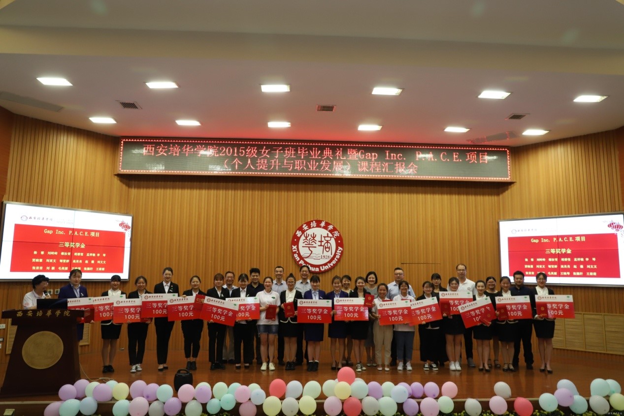 西安培华学院的战略合作伙伴陕西省妇联、省政府妇女儿童工作委员会办公室的代表,厅级巡视员冯 屹,陕西妇女儿童发展基金会秘书长任君恒,国际计划(美国)陕西代表处对外联络专员田博,中国致公党中央教育委员会副主任、陕西省政协常委、陕西省中华职业教育社副主任、西安培华学院理事长姜波博士,西安培华学院学术委员会主席 、学位评定委员会主席、副校长刘越莲,女子学院院长 、德艺双馨的著名作家叶广芩2015级女子学院女子班毕业生、2017、2018级参加Gap Inc.P.A.C.E课程的学生,教师团队等参加了活动。