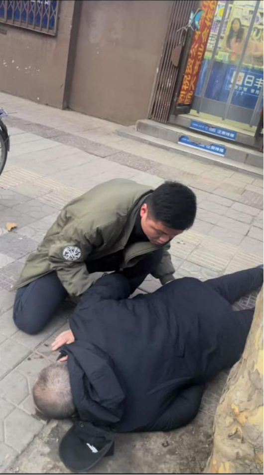 时间来到在2025年1月6日下午17时许,地点西安市新城区万寿南路地铁站咸宁药店旁,一位老人突发疾病,摔倒在地,情况危急。恰好路过的刘新同学,没有片刻犹豫,第一时间上前对老人进行了专业救助。他迅速拨打急救电话并报警,同时保持与患者的沟通,帮助老人恢复意识。随后,刘新同学陪同急救人员将老人抬上担架,送往西北大学第一医院治疗,并一直陪伴在老人身边,直到其家属到来,病情稳定。