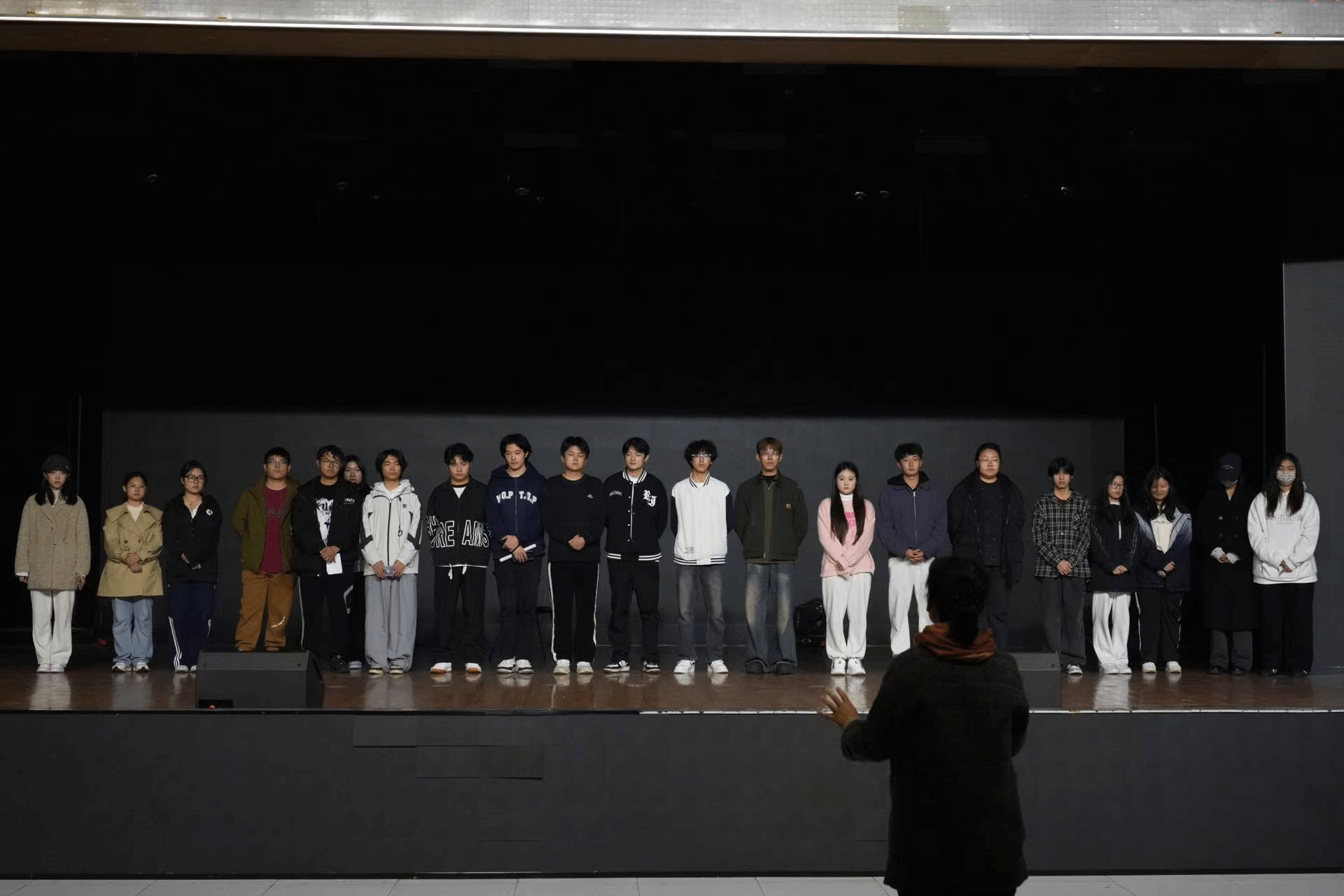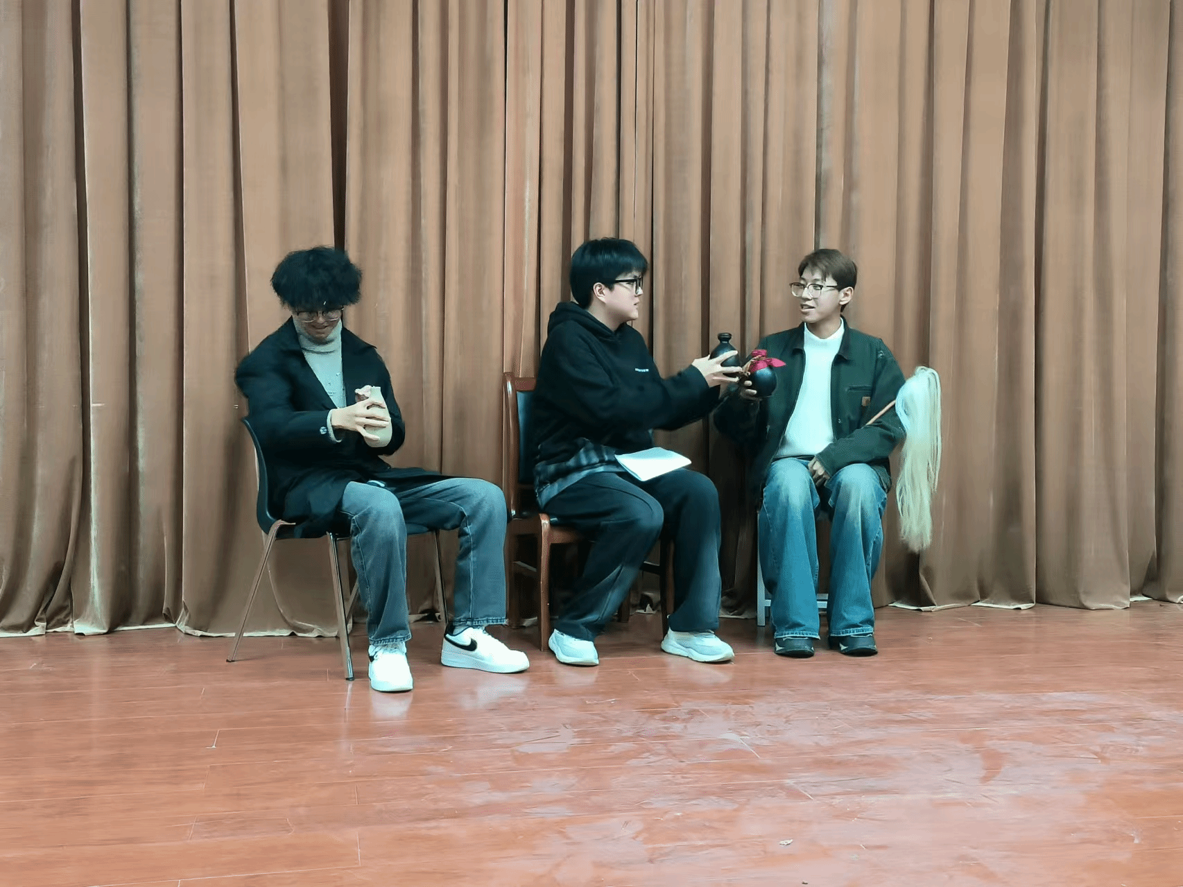 “第一次站在排练厅,我连大声念出台词的勇气都没有。”李俊杰回忆道。作为网络与新媒体专业的学生,他本可以安心待在镜头后面,但他选择了直面自己的恐惧。那些不为人知的努力,藏在每一个深夜的排练厅里。为了一个转身的动作,他反复练习直到深夜;对着宿舍的镜子,他一遍遍揣摩角色的神态;在专业课的拍摄作业中,他刻意锻炼自己的镜头感。“最难的是放开自己。”他说,“从一个习惯独处的‘社恐’到要在众人面前淋漓尽致地表演,这个过程就像破茧。”