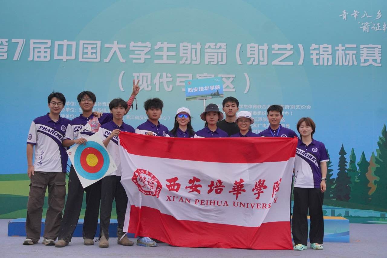 6月9日,第七届中国大学生射箭(射艺)锦标赛(现代弓赛区)在浙江省湖州市安吉县黄浦江源国家级射击射箭基地拉开战幕。本次赛事由中国学生体育联合会主办,吸引了全国45所高校的235名运动员同场竞技。西安培华学院射箭队无畏梅雨季持续强降雨的极端考验,凭借顽强意志与精湛技艺,在激烈角逐中勇夺两金三银四铜,创下校队参赛以来的最佳战绩,全国高校总积分位列第七。