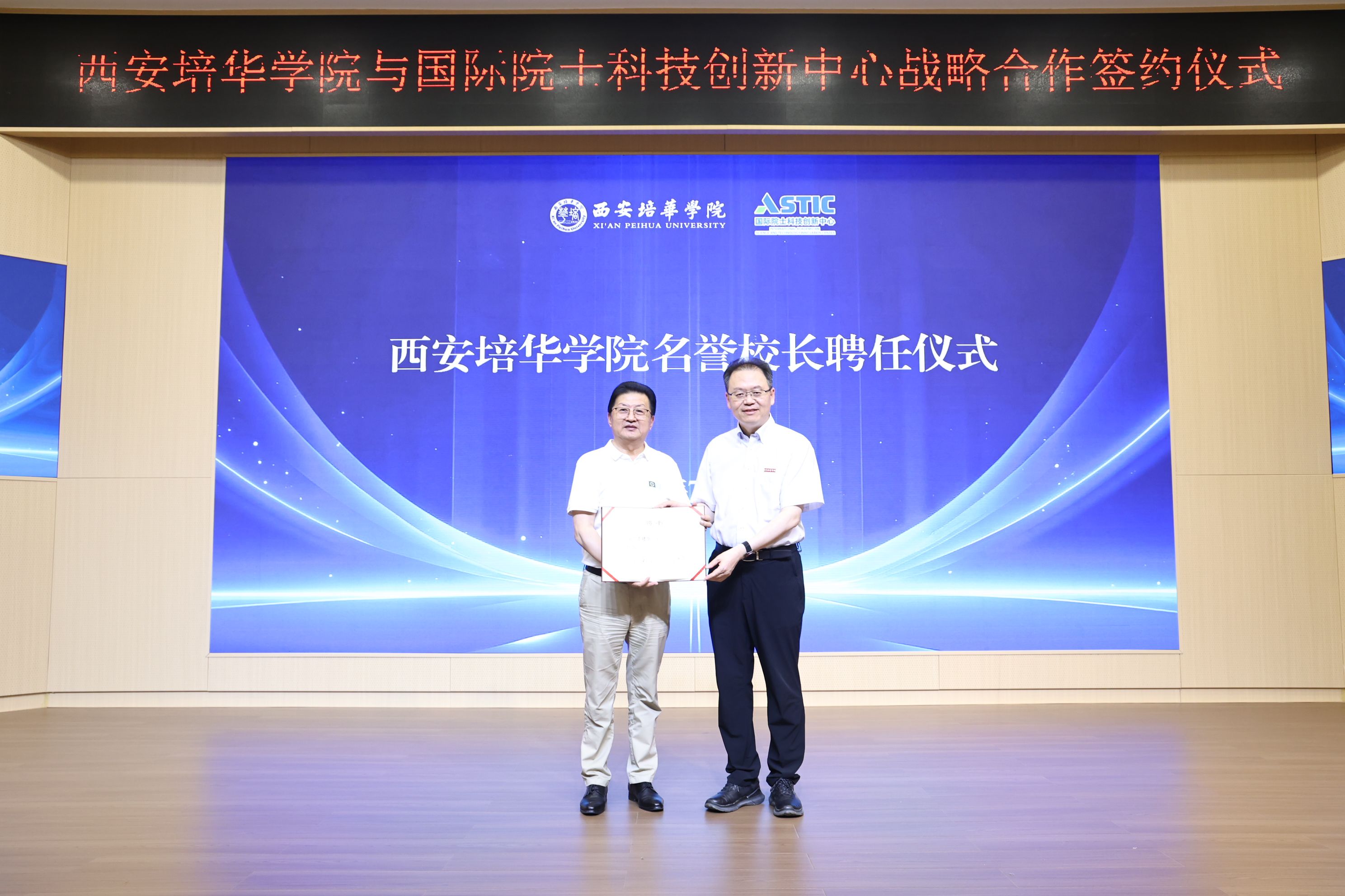 姜波理事长向于建华院士颁发了西安培华学院名誉校长聘书。