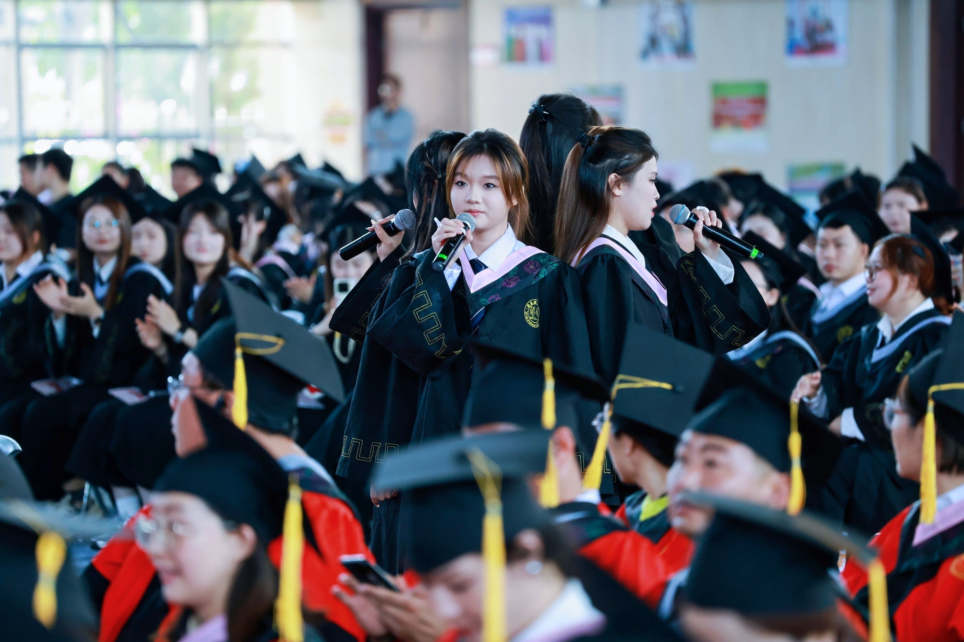 会计与金融学院毕业生、西部计划志愿者李建乐代表全体毕业生发言,她回顾了在培华的四年大学青春,感恩母校的培养,强调“知行合一”的重要性。她表示,自己已入选“大学生志愿服务西部计划”,将赴新疆生产建设兵团十二师从事基层工作,并以此号召全体毕业生牢记“校誉至上、质量第一、自强不息、开拓前进”的校训,像“蒲公英”一样扎根祖国需要的地方,让青春在奉献中闪光。