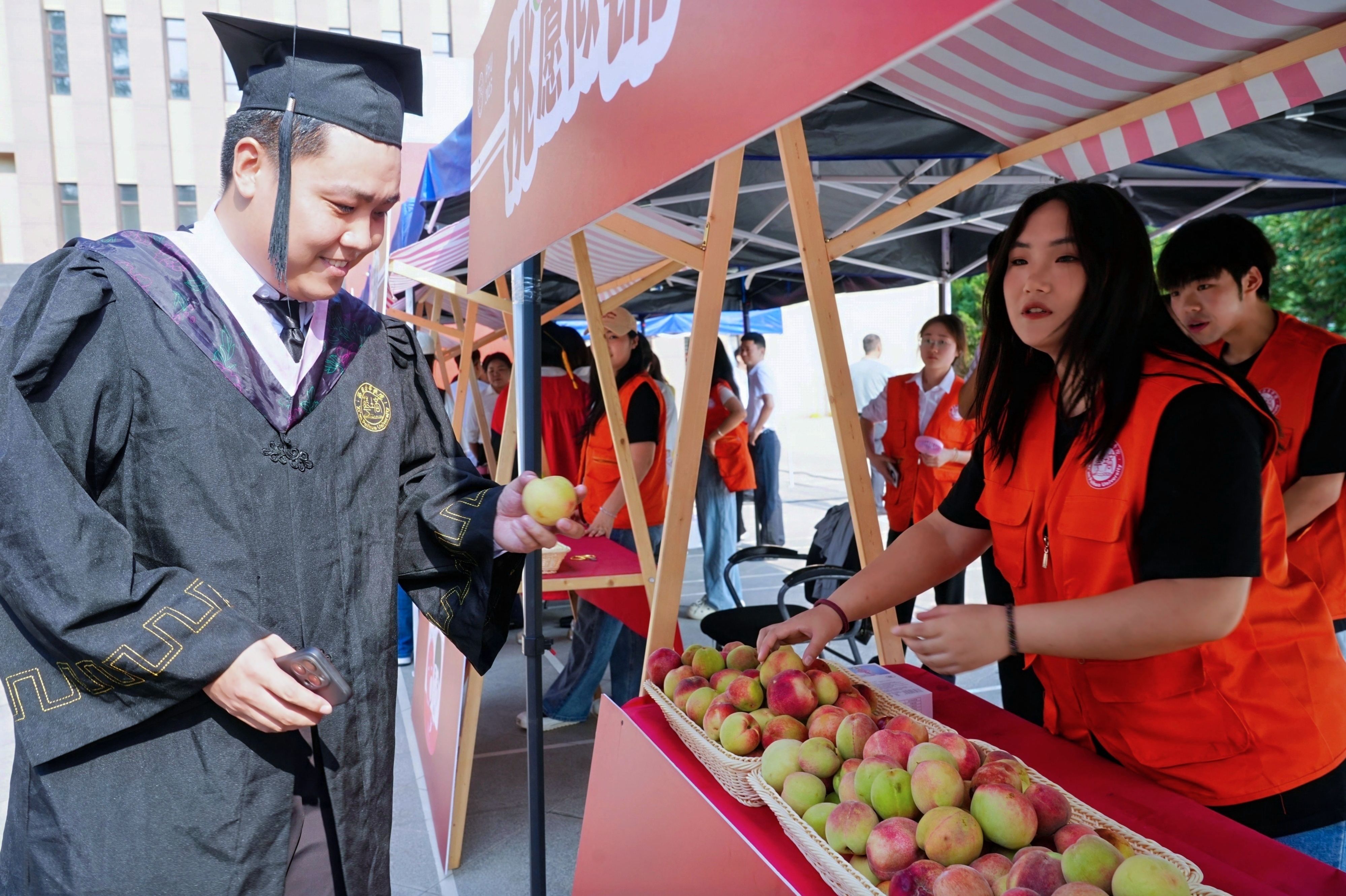 场馆外,学校特别设立了“向阳而生”“桃愿似锦”“甜绎未来”“长安的荔枝”“饺蕴乾坤”的毕业互动花车,为学子们送出一份温暖,毕业生们纷纷合影留念。