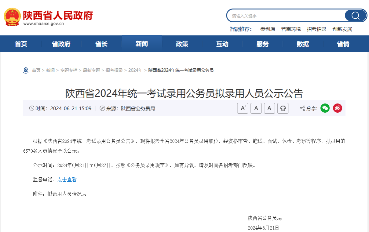 2024年陕西省统一考试拟录用公务员统计表
