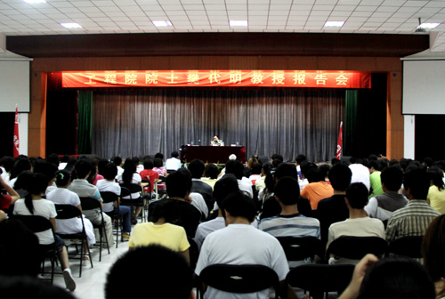 功夫不负有心人,樊教授为自己的祖国争得了一项项荣誉,在国内外引起了巨大的反响。樊代明教授丰富的人生阅历、百折不饶的奋斗人生、精妙的语言,感染和打动了在场的每一名听众,台下不时响起雷鸣般的掌声。他说:有人问我,为什么要这么致力于医学特别是胃癌的研究,我说我只是不想看到许多无辜的人因为胃癌而惨死,不想让现在的孩子有我一样的童年,想让世界的医学领域多一个中国人的身影……他还以他渊博的学识和幽默风趣的思辨语言回答了同学们的现场提问,与同学们畅谈人生、就业、理想等青年人关心的话题。樊教授思维活跃,语言生动幽默,其爱国情怀和创新精神是贯穿整场报告的主线,使师生深到启迪和鼓舞。
