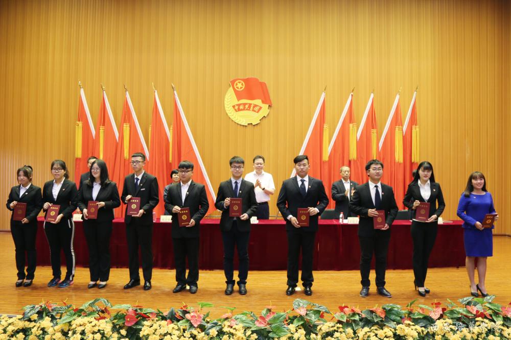 姚文静副书记宣读了《关于表彰2015-2016学年优秀团员 优秀团干部 优秀团员标兵 先进团支部 五四红旗团总支的决定》,决定中表示,对1043名优秀团员,403名优秀团干部,53名优秀团员标兵,25个先进团支部,3个五四红旗团总支进行表彰。随后,参会校领导为荣获以上表彰的学生代表颁发了荣誉证书。