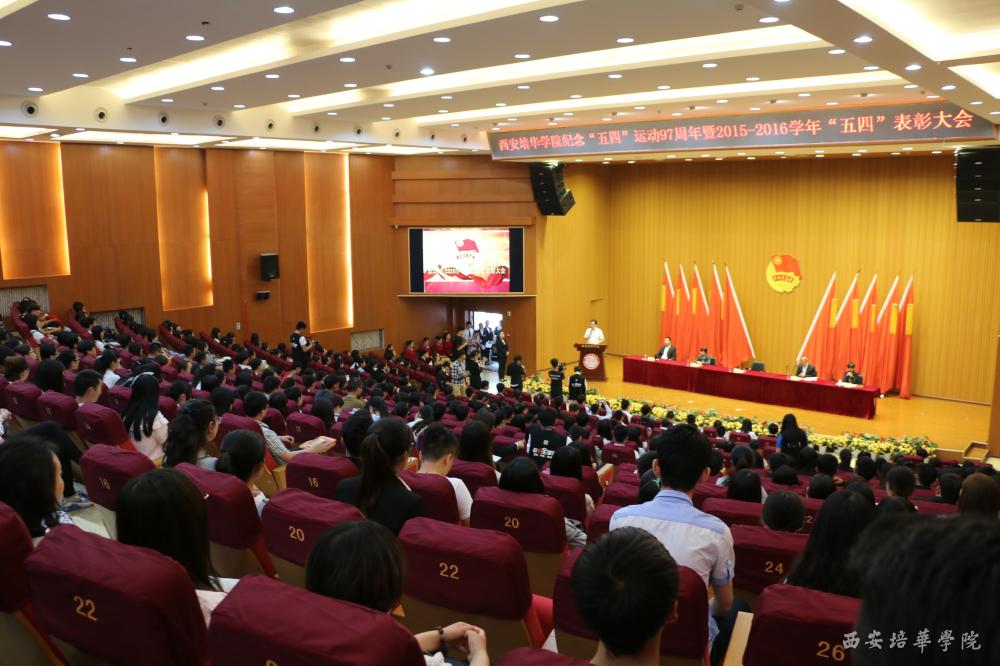 5月4日,我校在维之图书馆隆重召开纪念“五四”运动97周年暨2015-2016学年“五四”表彰大会,陕西省青年联合会副主席、我校理事长姜波,校长王拴才,党委书记周庆华,副校长兼党委副书记姚文静、徐国富出席表彰大会。各二级学院团总支,优秀团员代表500余人参加大会。会议由团委书记王翠主持。