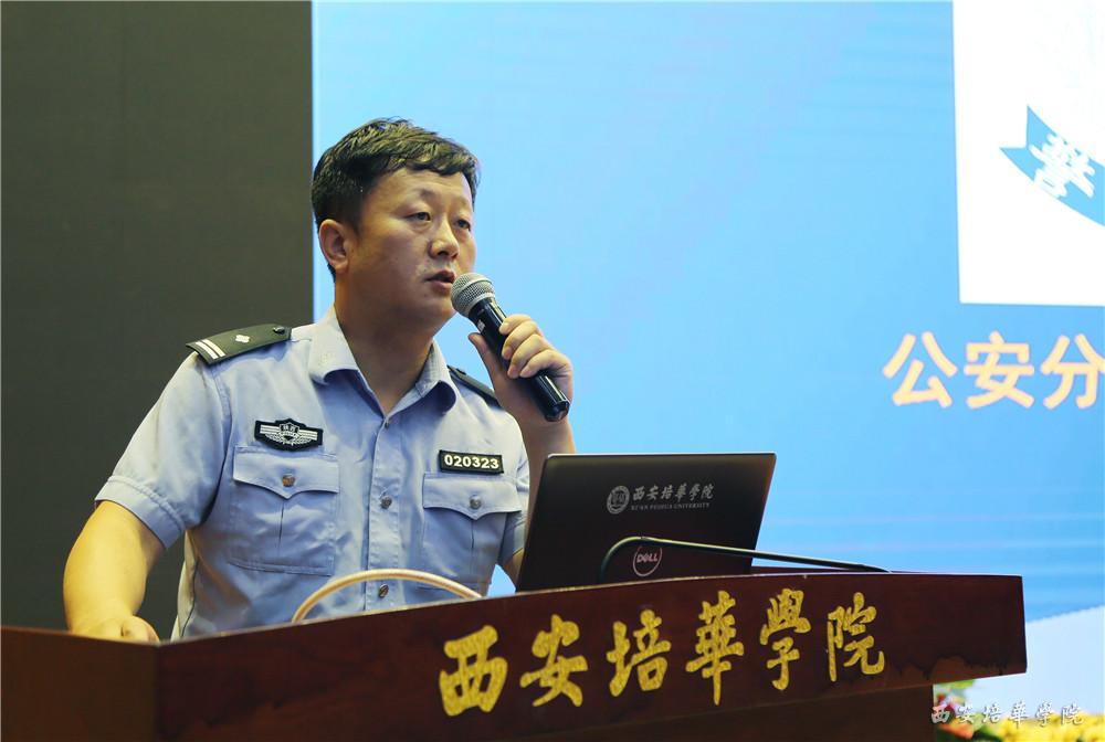 应邀主讲本次讲座的是长安分局常宁路派出所薛明所长,她结合生活中的具体事例,深入浅出地给师生们讲解了人身安全、防骗、防盗、网络贷款等有关法律法规知识。所选案例典型生动、接近学生、接近生活;随后又从校园安全、交通安全等方面对学生提出了具体要求。