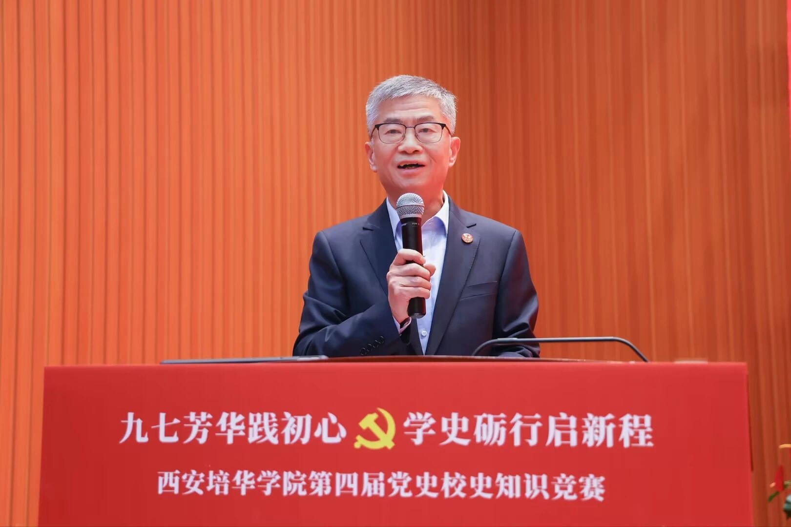 为热烈庆祝西安培华学院建校九十七周年,深入贯彻落实党史学习教育常态化长效化要求,进一步厚植广大师生爱党爱国爱校情怀,凝聚知校荣校、兴校强校的奋进力量,12月3日下午,学校“九七芳华践初心,学史砺行启新程”第四届党史校史知识竞赛决赛在图书馆报告厅隆重举行。