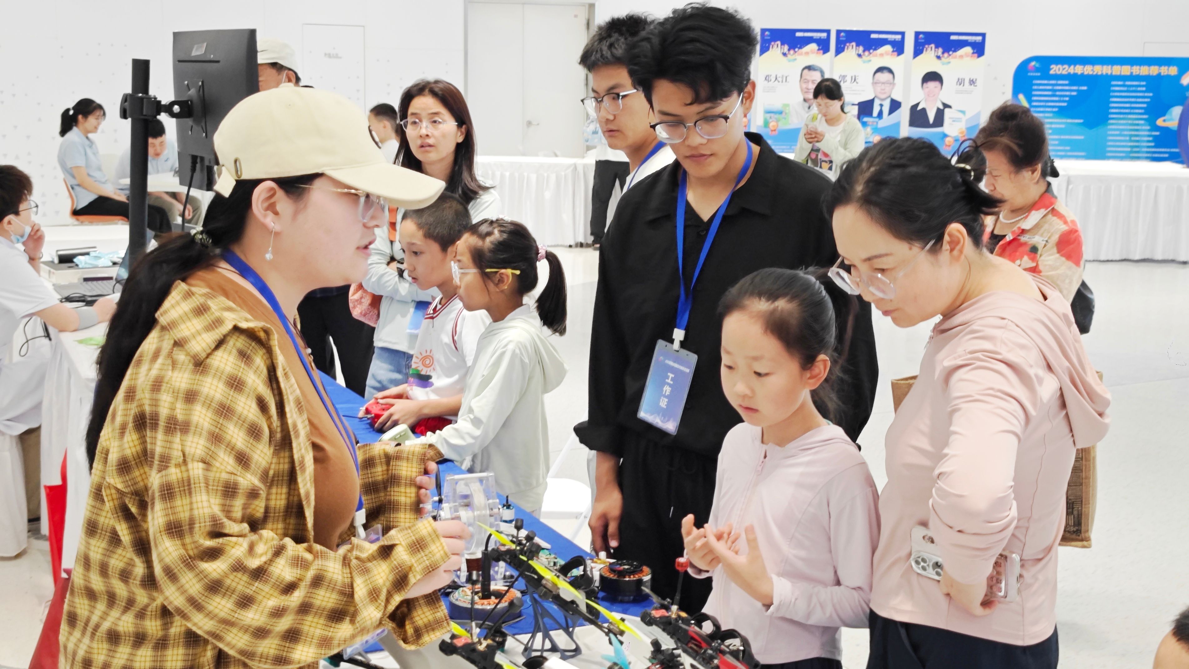 具备高速机动性能与多场景作业能力的穿越机无人机备受瞩目,师生们结合实物展品与展板视频,通过通俗易懂的语言向观众讲解各部件零件的功能与飞行原理;模拟飞行体验区气氛热烈,参观者借助专业操控设备完成虚拟无人机的障碍穿越任务,在趣味互动中感受航空科技的独特魅力。