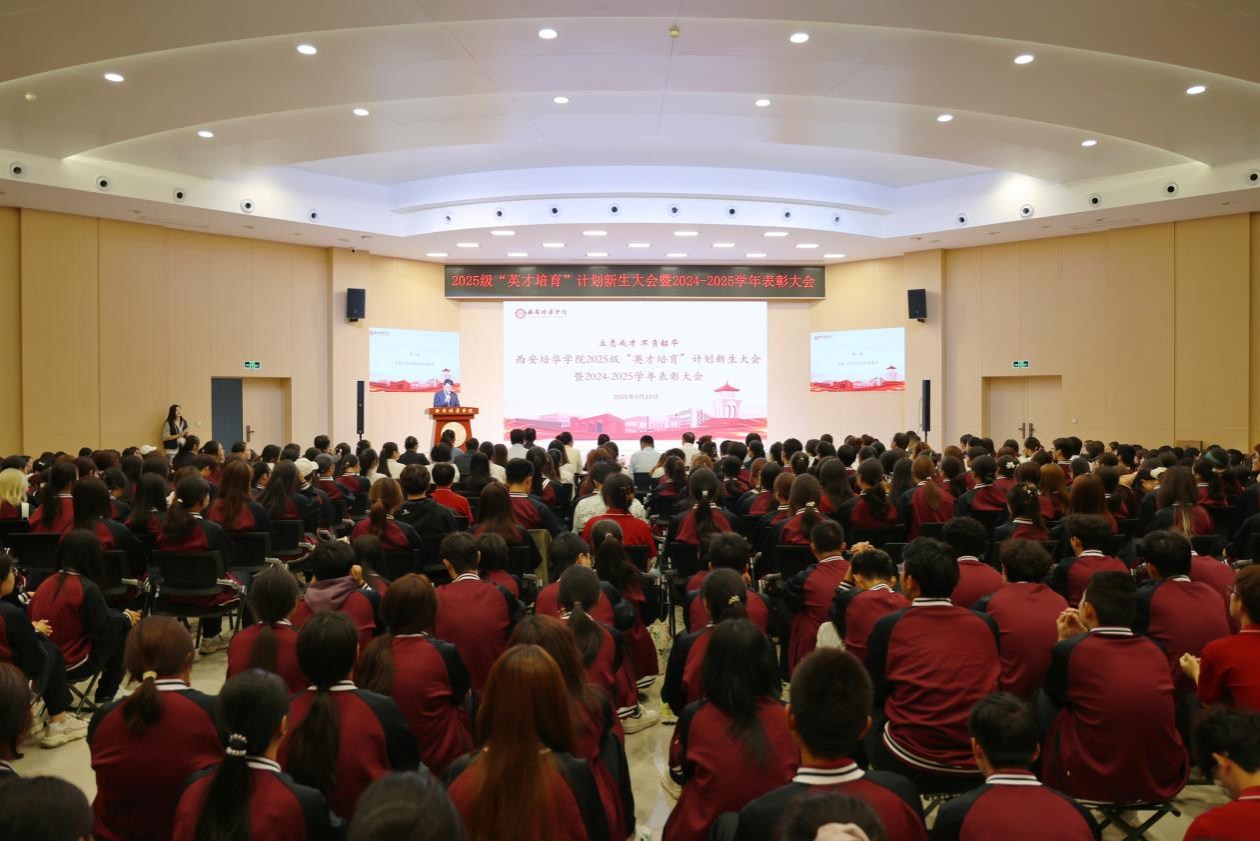 为进一步落实“英才培育”计划,提升教学质量与学生综合素质,9月18日,学校在明德楼四楼报告厅举行西安培华学院2025级“英才培育”计划新生暨2024-2025学年表彰大会。常务副校长胡俊生,教务管理中心主任铁卫,学生服务中心主任权勇太,教务管理中心副主任刘改琳、主任助理孟倩,校团委书记董莹,各二级学院党委书记、教学副院长、“英才培育”计划干事、专任辅导员及师生代表约700人参加了会议。本次会议由校长助理鲍伟主持。