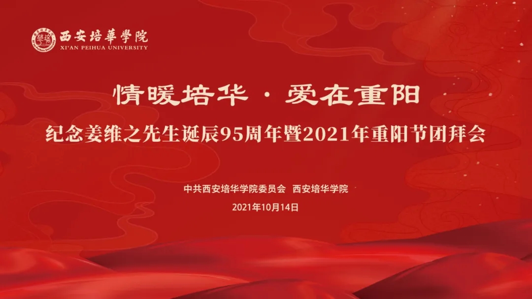 九月初九是重阳佳节,也是我国著名教育家、西安培华学院创始人姜维之先生诞辰95周年。姜维之先生,是中国民办高等教育史上的开拓者和重要人物,他的教育思想、办学宗旨、治学理念,他的生命人格和道德理想,不仅是培华的灵魂也是培华精神的一个重要的部分。 在这个传统节日里,学校也将尊老爱老的传统延续至今,每年都会在这里,诚邀60岁以上的教职工、关心支持培华发展的各级领导、离退休老领导、在陕革命英烈后代子女等出席...