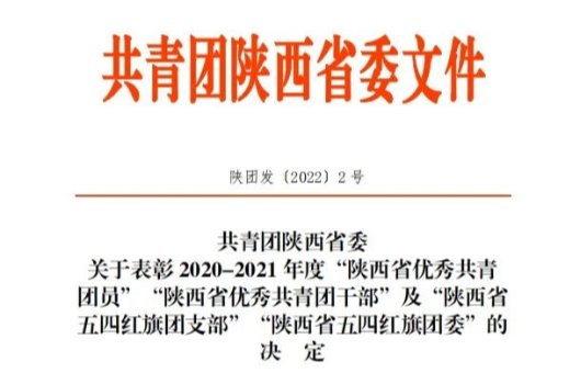 近日,为表彰先进,激励广大团员、团干部和基层团组织奋发有为、再创佳绩,共青团陕西省委发布了《关于表彰2020-2021年度“陕西省优秀共青团员”“陕西省优秀共青团干部”及“陕西省五四红旗团支部”“陕西省五四红旗团委”的决定》,其中,我校传媒学院新闻学专业2019级2班团支部被评为2020-2021年度“陕西省五四红旗团支部”,我校智能科学与信息工程学院2018级电子信息工程专业学生许向泽被评为2020-2021年度“陕西省优秀共...