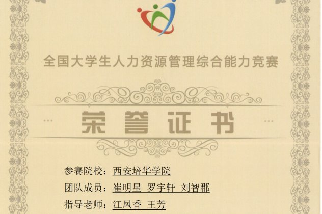 【教育教学】培华学子在全国大学生人力资源管理综合能力竞赛中喜获佳绩