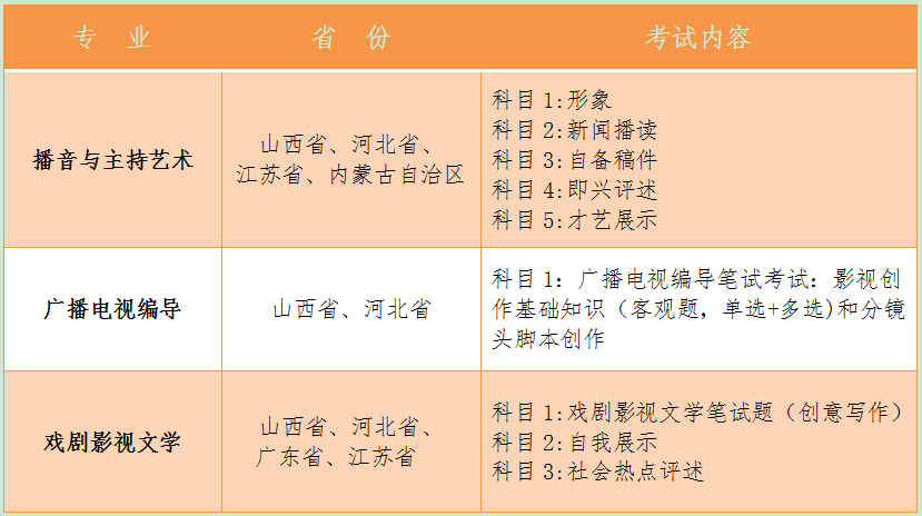2.播音与主持艺术专业要求:热爱播音与主持事业,身体健康、体形匀称、五官端正、口齿清晰、无发音器官疾病,同时具备良好心理素质的高中应、往届毕业生。